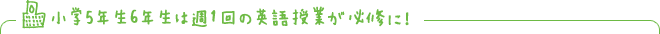 - 平成23年度より、小学校5・6学年で年間35単位の「外国語活動」が必修化されました。外国語活動は“音声を中心に外国語に慣れ親しませる・言語や文化について体験的に理解を深める・積極的にコミュニケーションを図ろうとする態度を育成・コミュニケーション能力の素地を養う”ことを目標に実施されています。